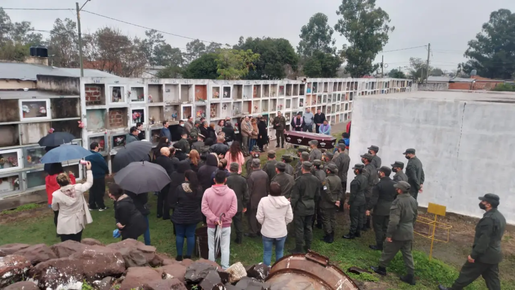 En la mañana del miércoles, familiares y amigos de Gustavo Elorrieta, gendarme asesinado a mazazos por su ex esposa y su hijo, despidieron su cuerpo en el cementerio de la localidad correntina de Monte Casesos.